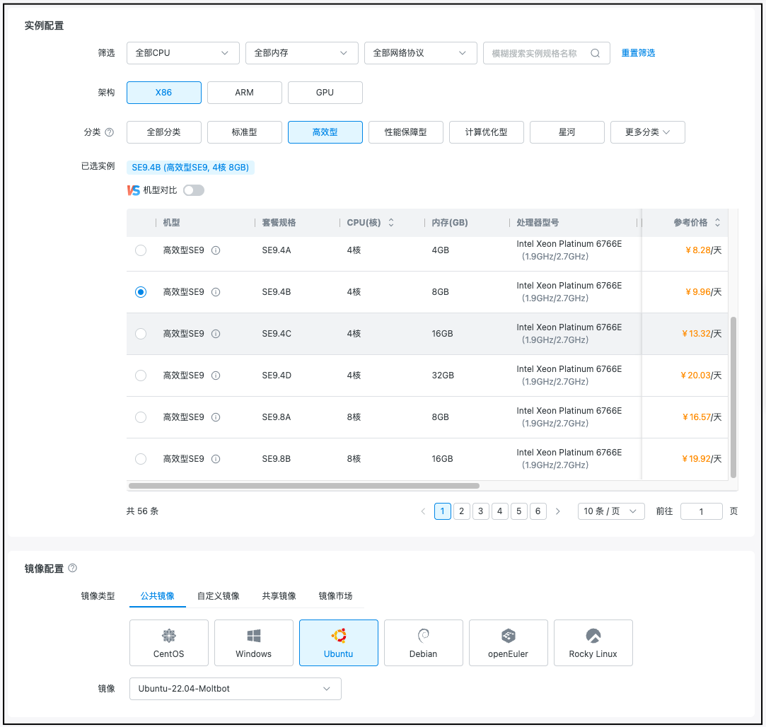 2. 選擇適配的云主機(jī)機(jī)型(參考下方機(jī)型矩陣)